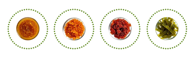 Las piezas de JusFruit Puree+ pueden mejorar el perfil nutricional de tus productos con una etiqueta corta y limpia.