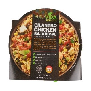 Chicken baja bowl: Puravida Lifebowl Cilantro Chicken Baja Bowl with Roasted Tomato Chile Sauce está hecho con ingredientes orgánicos y artesanales y no contiene sabores artificiales ni grasas trans.