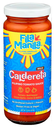 © Fila Manila Mild Caldereta Filipino. Salsa de tomate (Estados Unidos) Se puede agregar simplemente a carne, marisco o verduras, o usar como salsa para mojar, untar pan, como dip o como condimento para arroz, frijoles, sopas, chile y guisos.
